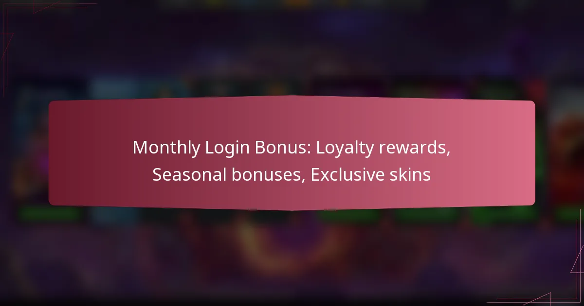 Monthly login bonuses typically include loyalty rewards, seasonal bonuses, and exclusive skins. These rewards enhance gameplay and provide incentives for players to engage regularly with the game.